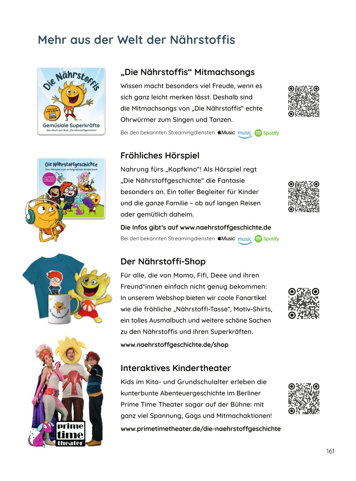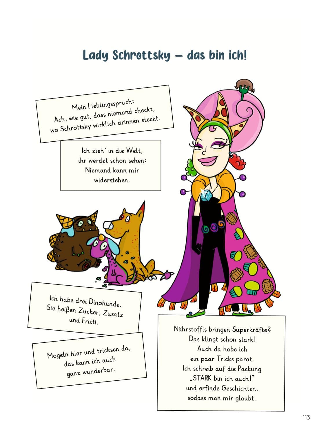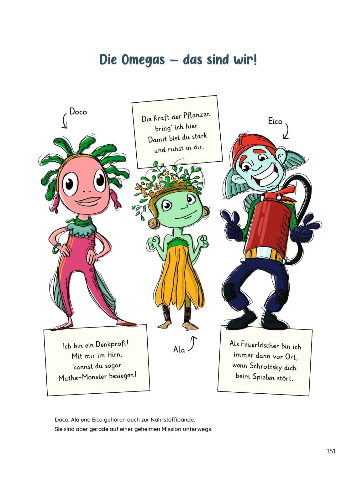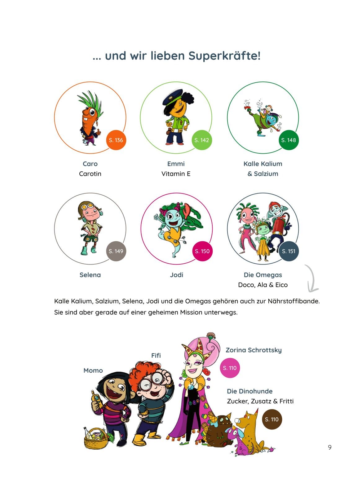 Schokokrise. Bonbondebatte. Kekskonflikt. Eltern kennen die Diskussion ums (un-)gesunde Essen zur Genüge. Der Knackpunkt: Kinder wissen oft nicht, warum genau etwas gut für sie ist – oder eben nicht. „Die Nährstoffgeschichte“ vermittelt mit dem fröhlichen Abenteuer der kleinen „Nährstoffis“ und jede Menge Bonusmaterial das nötige Wissen – über die Superkräfte von Vitaminen und Mineralstoffen … und die fiesen Tricks von „Lady Schrottsky“. Alles ohne den erhobenen Zeigefinger, ohne Mahnungen oder Verbote.